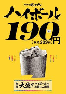 今だけ限定!ジムビームハイボールを190円(税込209円)にてご提供いたします。